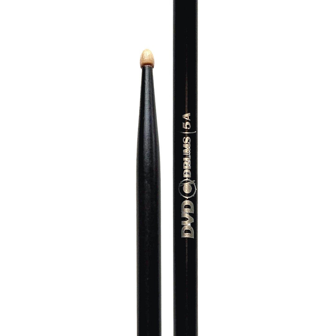 Baquetas para batería acústica y electrónica marca DVD, medida 5A, madera de maple, punta de madera, color negro.