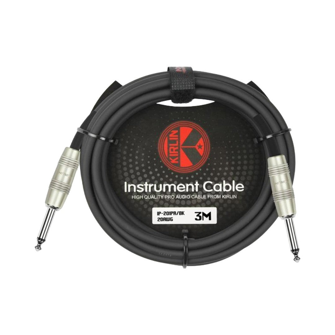 Cable para instrumento marca Kirlin, conectores de 1/4, rectos, niquelados, mono, cable de cobre, calibre 20, revestimiento pvc, largo de 3 mt, color negro.