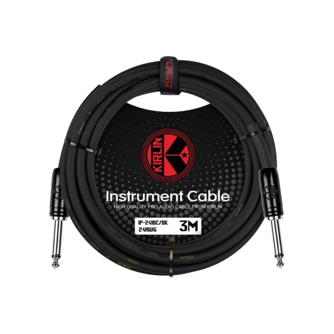 Cable para instrumento marca Kirlin, conectores de 1/4, rectos, niquelados, mono, cable de cobre, calibre 24, revestimiento pvc, largo de 3 mt, color negro.