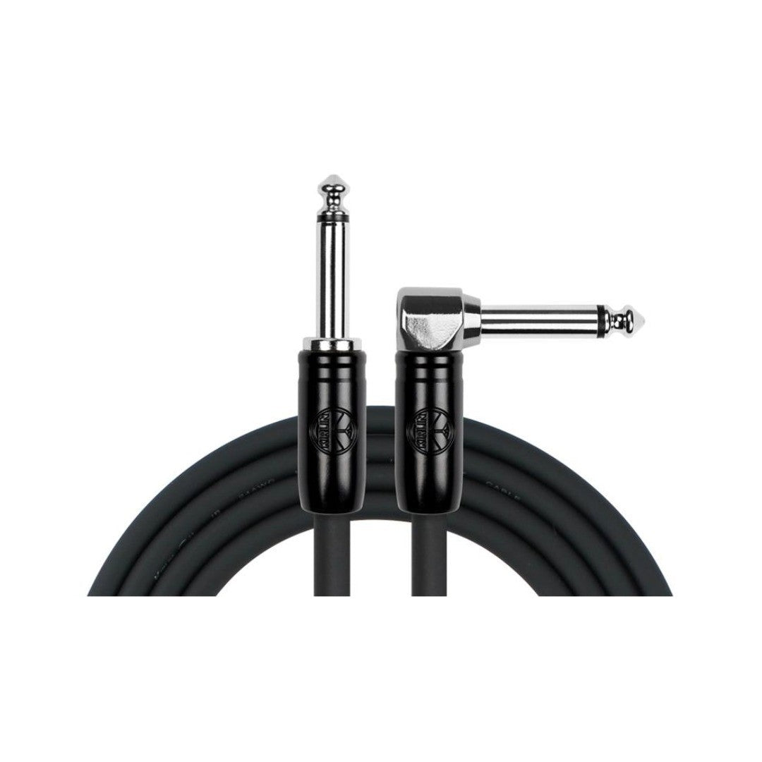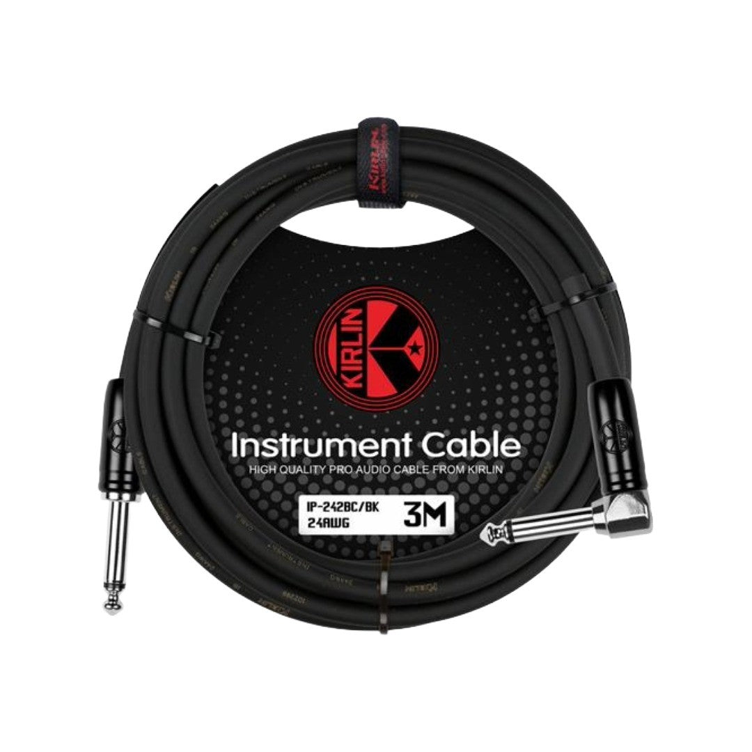 Cable para instrumento marca Kirlin, conectores de 1/4, recto / angulado, niquelados, mono, cable de cobre, calibre 24, revestimiento pvc, largo de 3 mt, color negro.