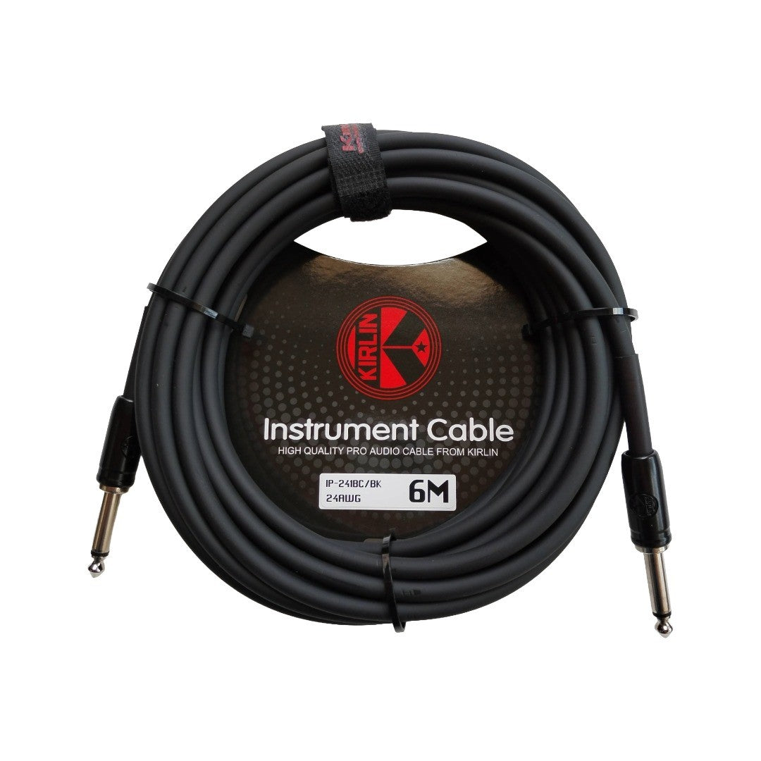 Cable para instrumento marca Kirlin, conectores de 1/4, rectos, niquelados, mono, cable de cobre, calibre 24, revestimiento pvc, largo de 6 mt, color negro.
