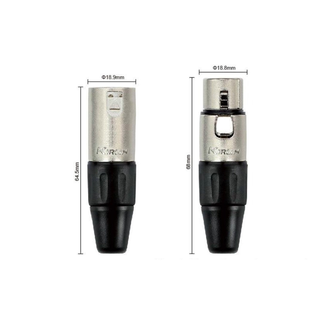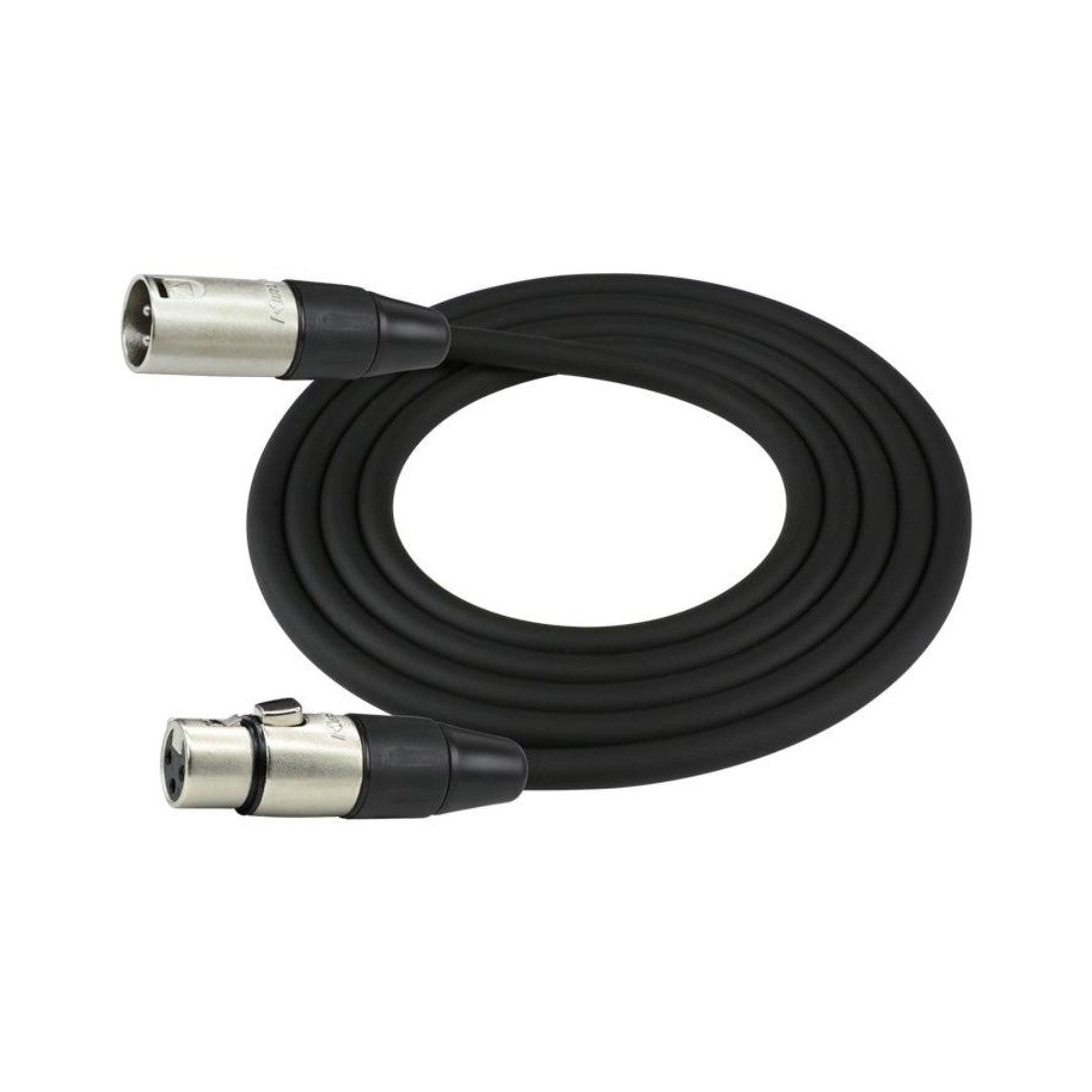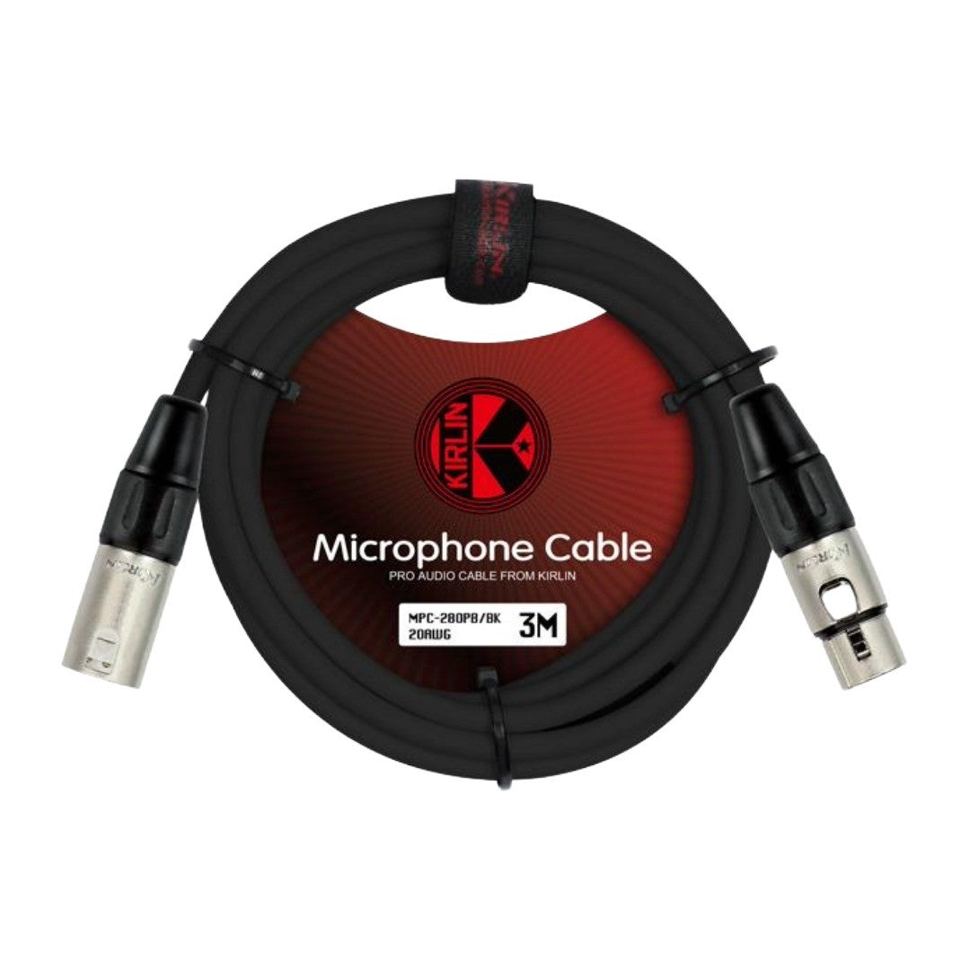 Cable para micrófono marca Kirlin, conectores XLR macho a XLR hembra, estañados, 3 pines, cable de cobre, calibre 20, revestimiento pvc, largo de 3 mt, color negro.
